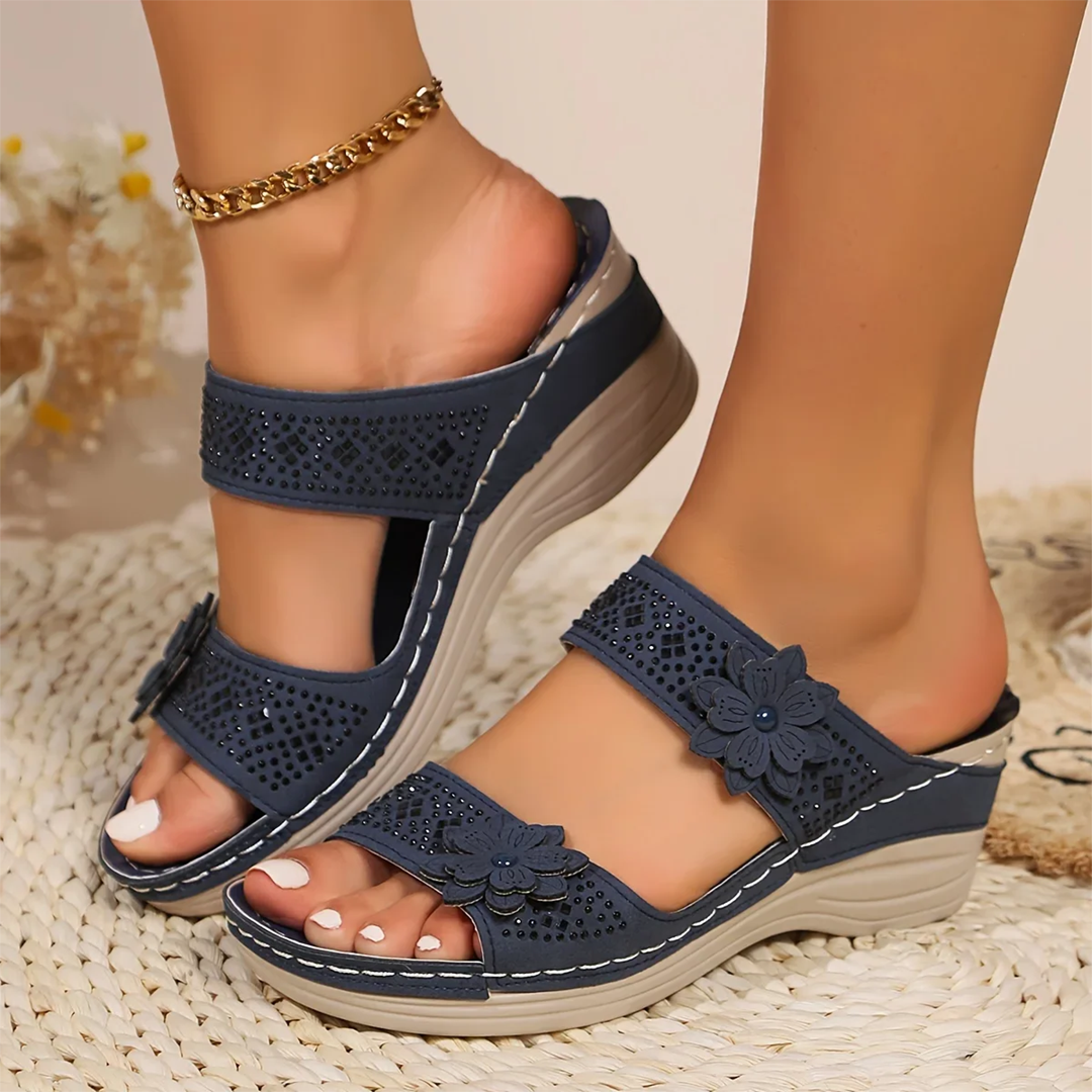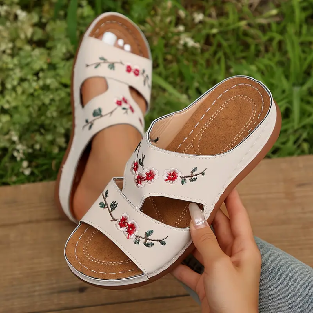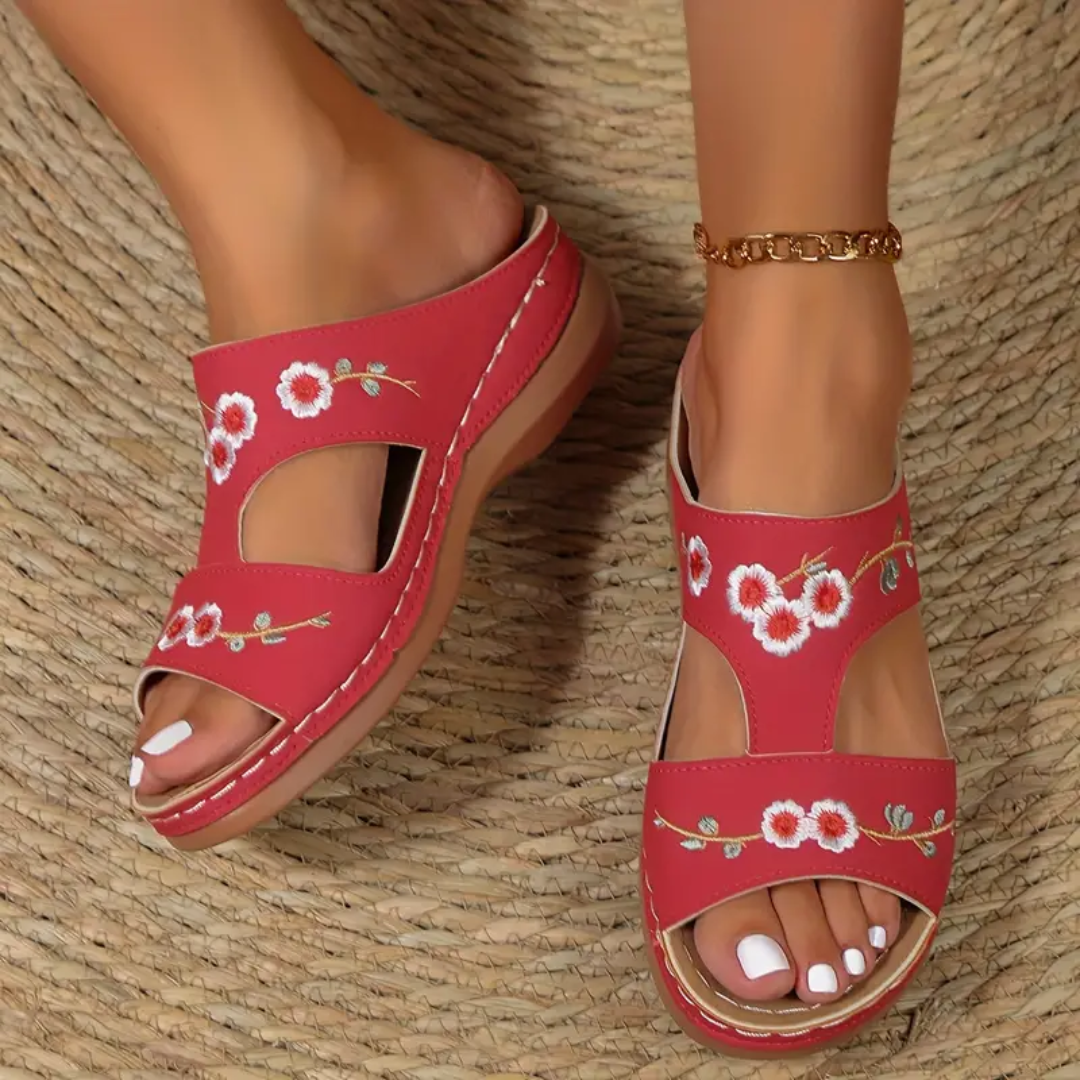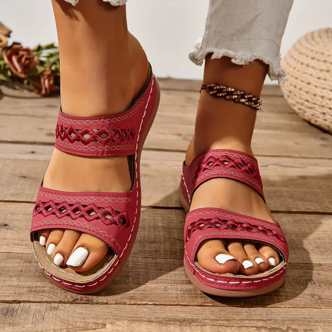 Blisscomfy Arch Support Criss Cross Strap Slide Sandals