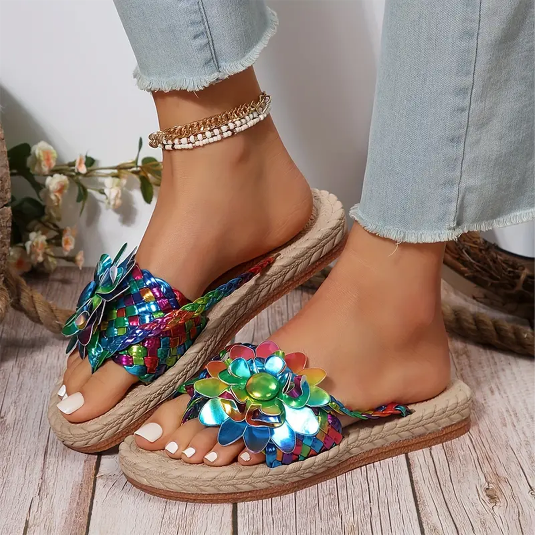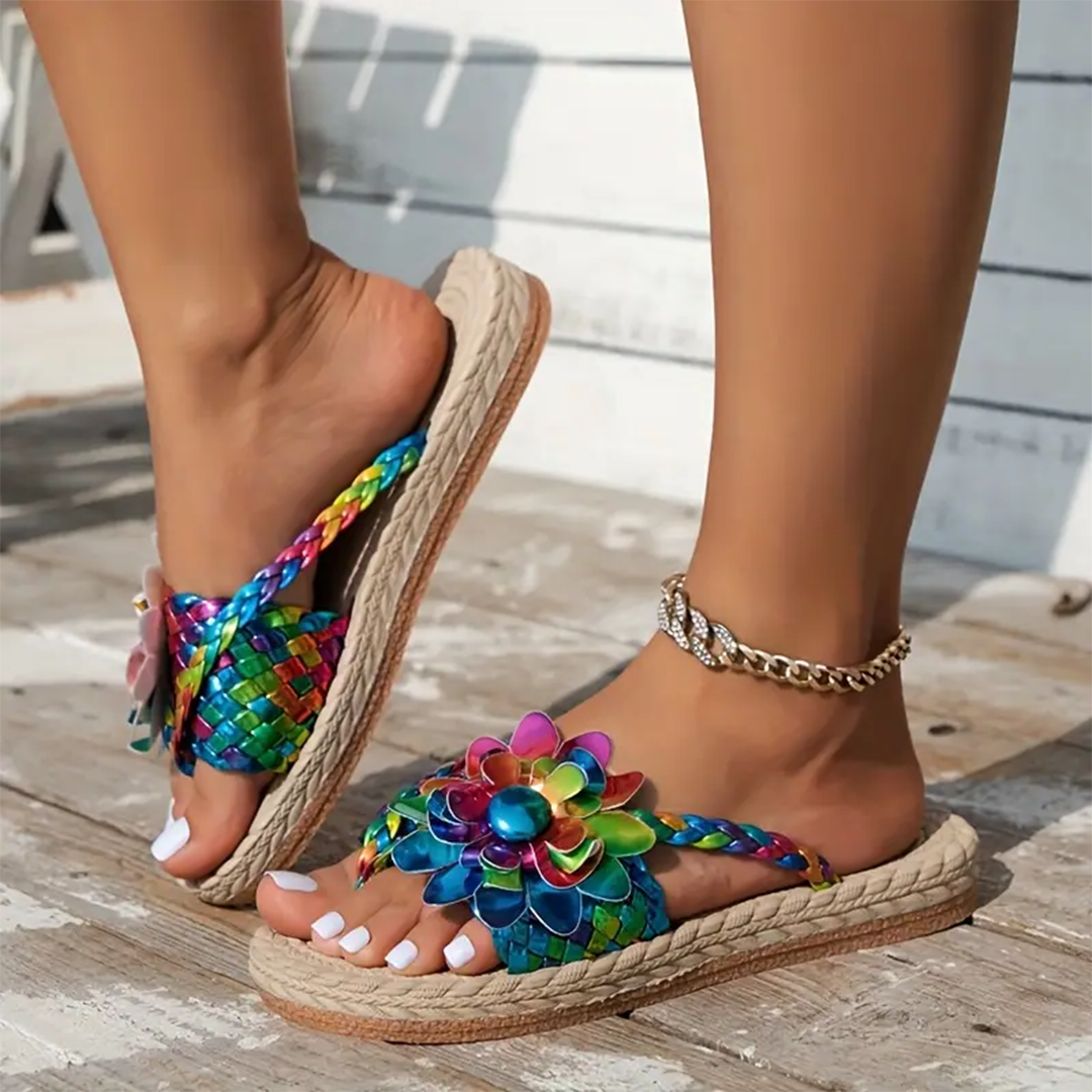 Uniqcloud Studded Flower Braided Band Flat Flip Flops