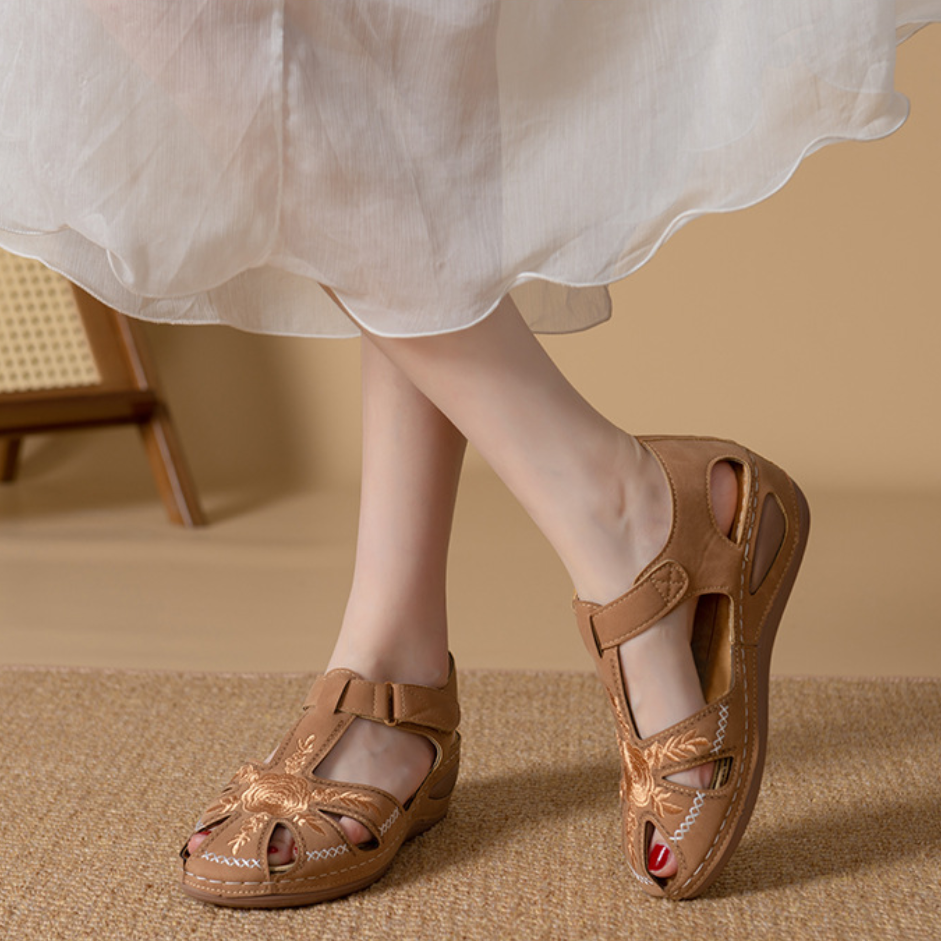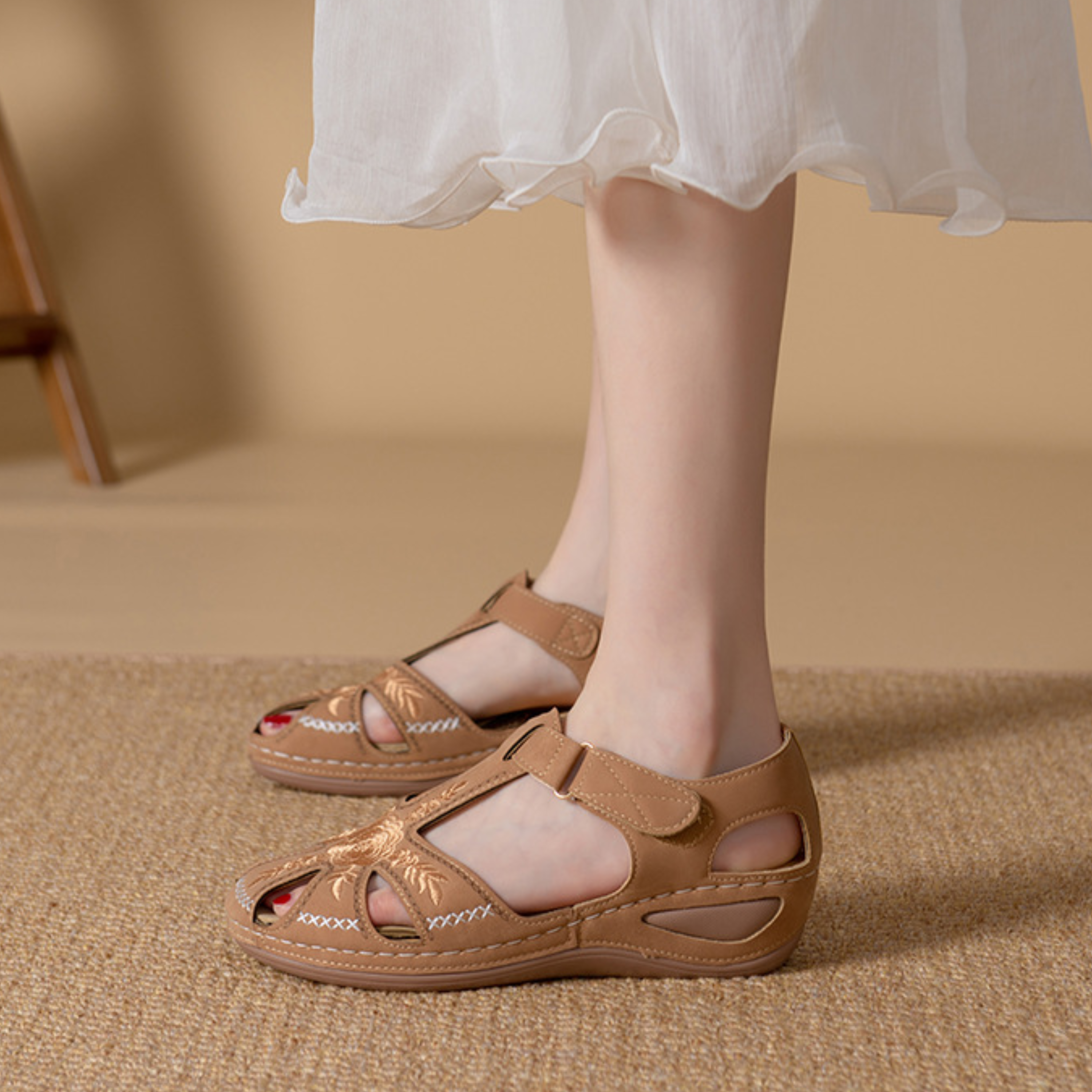 4. Versatile Flexibility: Welcoming Various Foot Shapes! Our summer sandals for women, equipped with a hook and loop closure, guarantee effortless slip-on and removal, catering to all types of feet.
